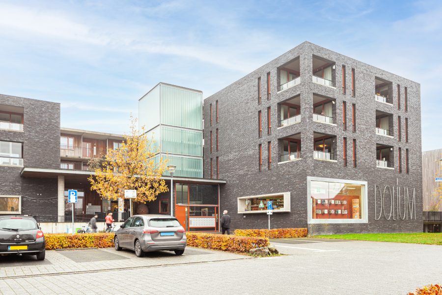 Er zijn voldoende gratis parkeerplekken in de buurt en onder het Dolium. Bij de hoofdingang vindt u de invalideparkeerplaatsen.